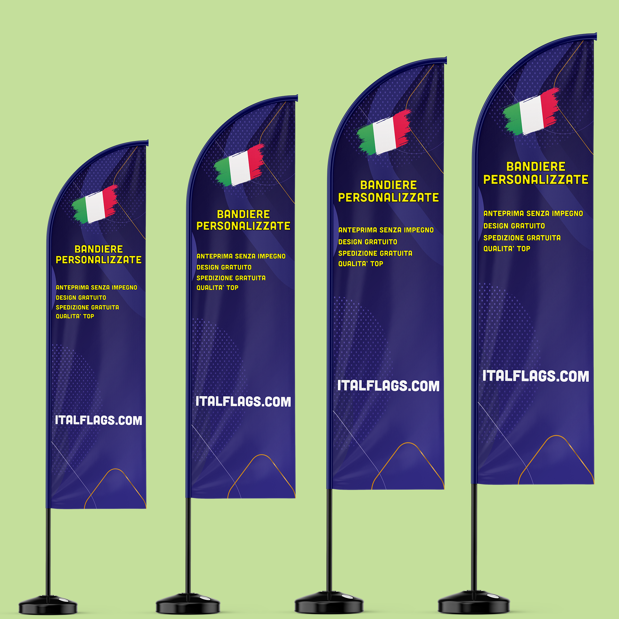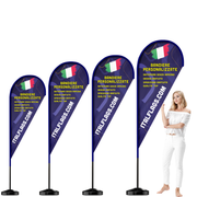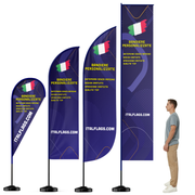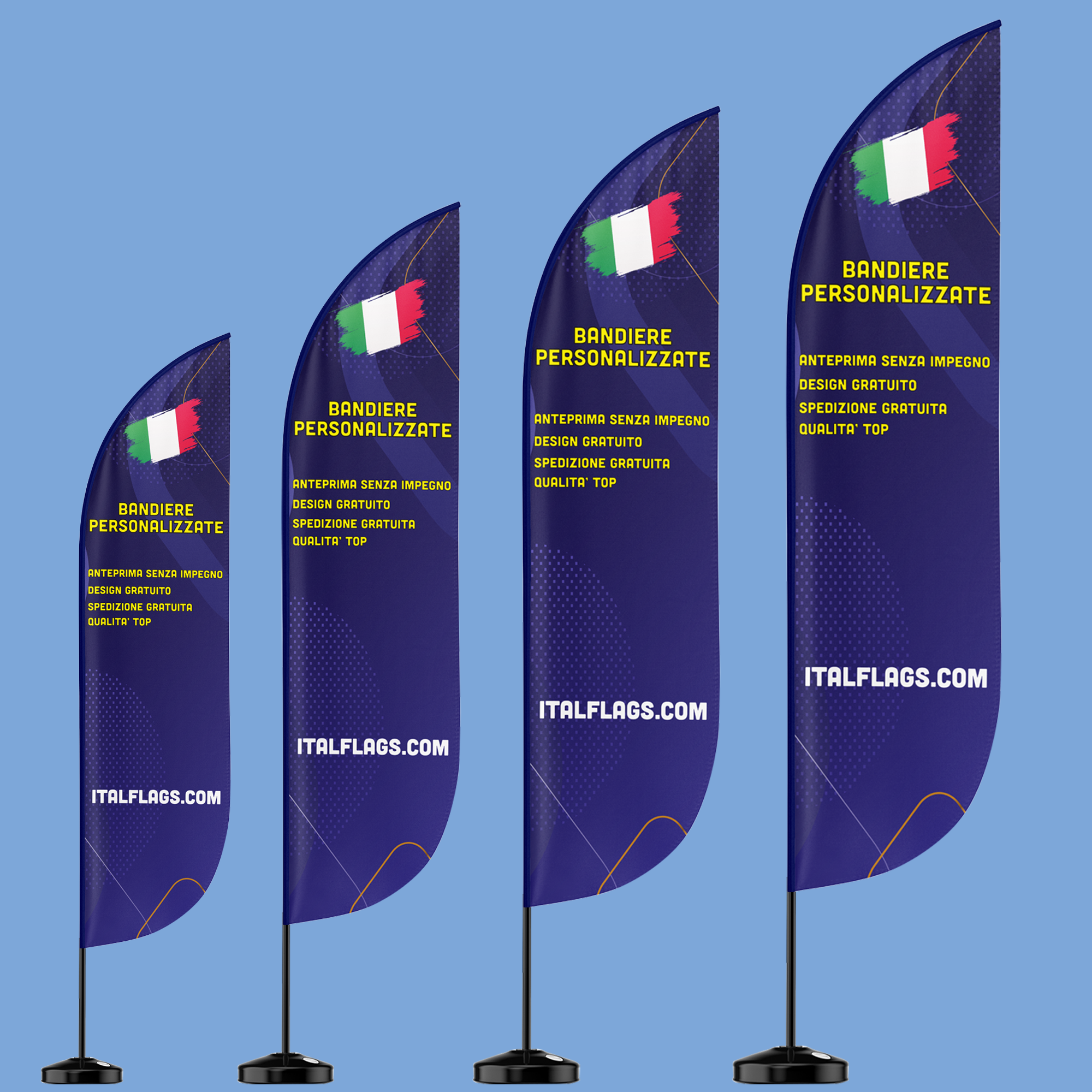 Bandiera a Goccia, Bandiera a Piuma, Bandiera a Foglia e Bandiera Squadra, Vai al configuratore, seleziona e ricevi l'anteprima gratuitamente senza impegno in un'ora dalla vostra richiesta.