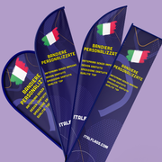 Ideale per eventi esterni e fiere, la bandiera a goccia cattura l'attenzione grazie al suo design unico e dinamico. Il movimento del tessuto assicura visibilità ottimale al tuo logo o messaggio, rendendola una scelta eccellente per massimizzare la presenza del tuo brand.